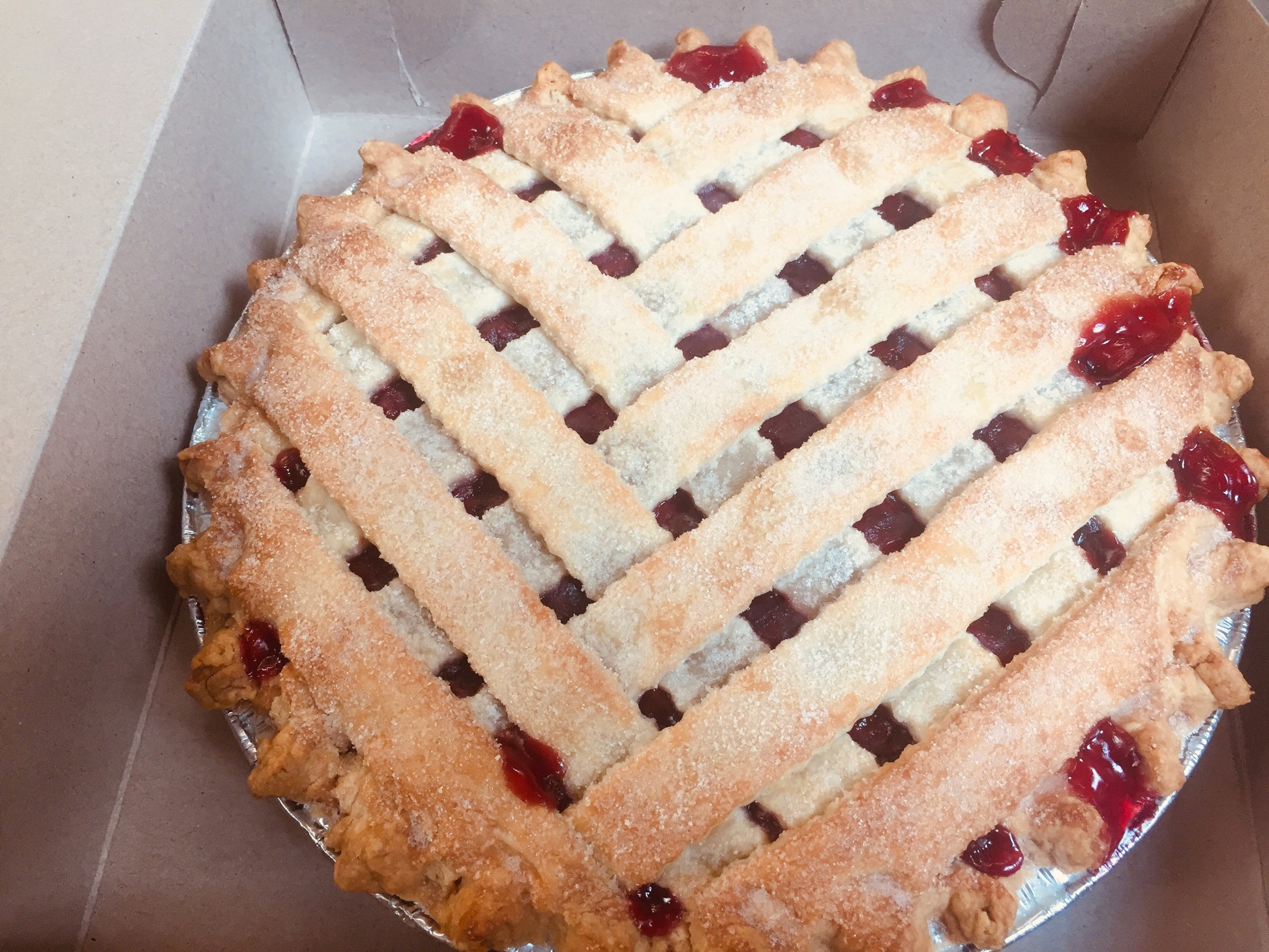 Scrumptious sour cherries lightly spiced in our all butter double crusted pie shell.